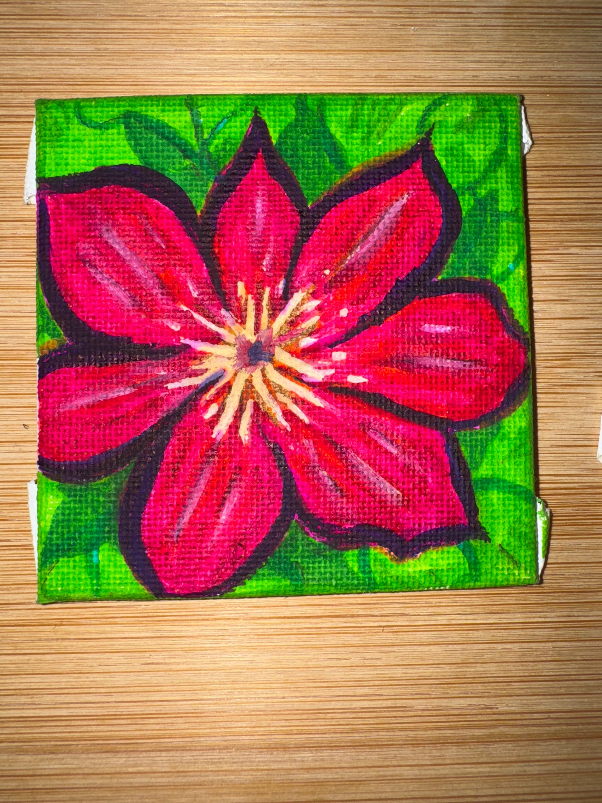 Bright and cheerful floral design on 3x3inch textured canvas card - Original Art by Max Landry